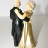 Esta figura decorativa retrata um casal maduro a dançar com elegância e alegria: ele veste um clássico smoking preto com laço, ela um deslumbrante vestido dourado – símbolo perfeito de uma união duradoura, cheia de afeto, cumplicidade e história.