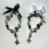 - Os terços são elaborados à mão, não são utilizados produtos provenientes de origem oriental. Nos mesmos não é utilizado fio de pesca.