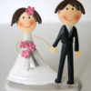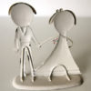Esta figura encantadora representa dois noivos de mãos dadas, num momento simples e cheio de ternura. A noiva leva uma flor rosa no cabelo e segura um pequeno ramo da mesma cor – um gesto romântico que expressa carinho e cumplicidade.