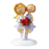 Esta bela figura retrata dois noivos felizes, vestidos com elegância em fatos cinzentos – um com gravata, outro com laço vermelho – segurando juntos um bouquet de rosas vermelhas. Um símbolo de união, igualdade e compromisso, ideal para casais que celebram o seu amor com orgulho e autenticidade.